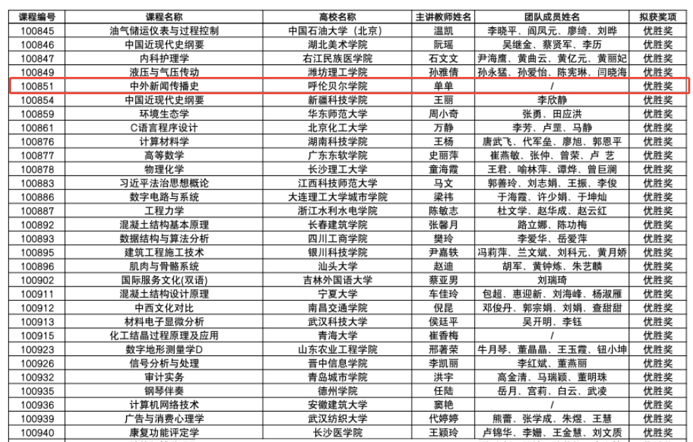 本屆比賽有來自全國各高校的數千余門課程通過線上參賽,競爭異常激烈。在激烈的角逐中,我校《大學英語AI》韓麗偉團隊憑借出色的教學設計與實踐,榮獲全國二等獎,充分展示了學校在英語教學改革方面的創新成果。同時,《中外新聞傳播史》單單老師也憑借自己在混合式教學中的獨特見解和實踐經驗,榮獲優勝獎,為學校贏得了榮譽。