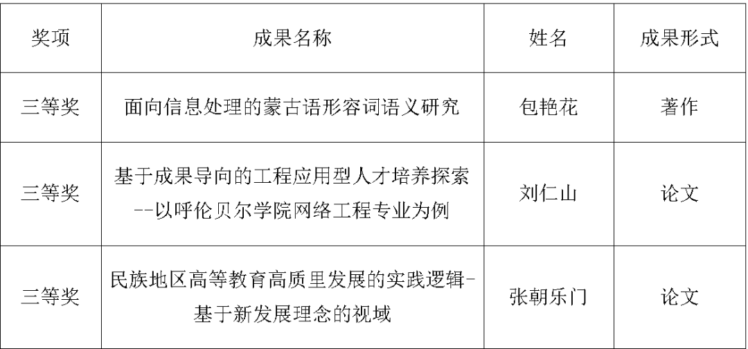近日,第十一屆內蒙古自治區哲學社會科學獎評選結果正式揭曉,我校教師憑借扎實的研究功底與創新的學術成果表現突出,斬獲三項三等獎,充分彰顯了學校在哲學社會科學研究領域的深厚積淀與發展活力。