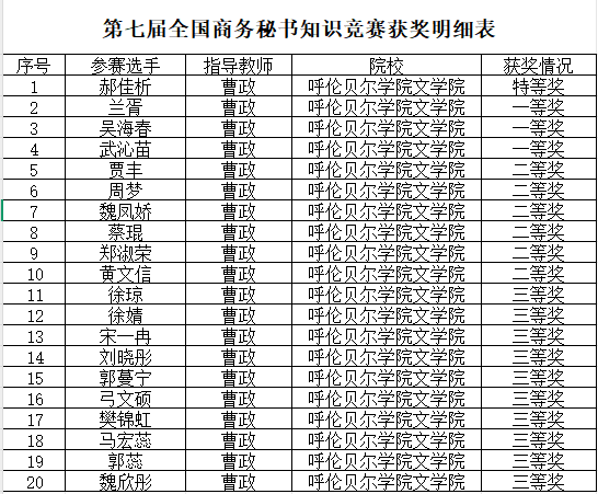 近日,第七屆全國商務秘書專業知識競賽圓滿落幕,我校文學院秘書學專業學子憑借扎實的專業功底與出色的實踐能力脫穎而出,在全國近6000名參賽者中勇創佳績,斬獲多項重量級獎項。其中,郝佳析同學摘得特等獎桂冠;蘭胥、吳海春、武沁苗3名同學榮獲一等獎;賈豐、周夢等6名同學斬獲二等獎;徐瓊、徐婧等10名同學喜獲三等獎,獲獎覆蓋面與含金量均位居前列。