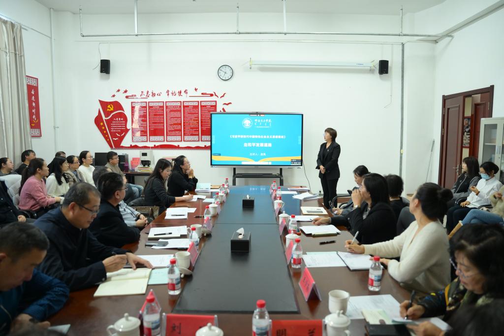 我校馬克思主義學(xué)院《習(xí)近平新時(shí)代中國(guó)特色社會(huì)主義思想概論》教研室主任李凌敏、赤峰學(xué)院馬克思主義學(xué)院同課程教研室主任張冬梅分別匯報(bào)了各自院校課程建設(shè)情況。兩位主任從教材分析、教學(xué)改革探索、育人成效總結(jié)等方面展開(kāi)詳細(xì)闡述,既展現(xiàn)了兩校在思政課建設(shè)中的扎實(shí)舉措與鮮明特色,也為校際經(jīng)驗(yàn)互鑒搭建了有效橋梁。