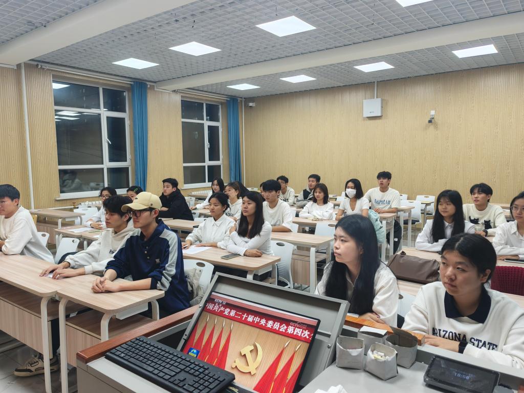 活動以“理論學(xué)習(xí)+交流分享”的形式展開:全體成員首先共同觀看中國共產(chǎn)黨第二十屆中央委員會第四次全體會議公報視頻,系統(tǒng)了解了“十四五”時期的成就與“十五五”的重要地位、發(fā)展環(huán)境以及社會發(fā)展的指導(dǎo)思想,為后續(xù)分享交流奠定理論基礎(chǔ);隨后青馬班學(xué)員李超然、郭斯蕊、吳家樂、丁浩天、劉嘉碩、陳玲波依次登臺,結(jié)合自身專業(yè)背景、學(xué)習(xí)日常與生活實際分享個人學(xué)習(xí)感悟——既有對全會中“協(xié)同推進降碳、減污、擴綠、增長”“筑牢生態(tài)安全屏障”等內(nèi)容的理解,也結(jié)合采礦專業(yè)的綠色開采技術(shù)、化學(xué)化工領(lǐng)域的低碳生產(chǎn)工藝,思考“如何將全會精神落實到學(xué)業(yè)規(guī)劃、實踐行動”,不少觀點引發(fā)了現(xiàn)場成員的共鳴。