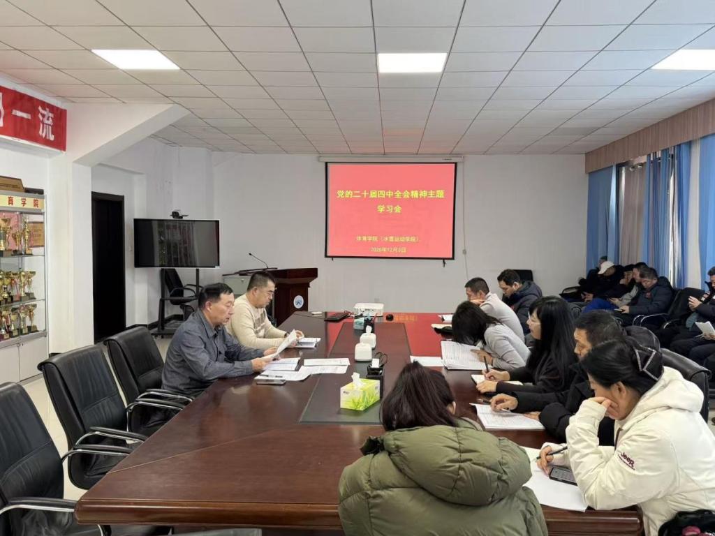 為深入學習貫徹黨的二十屆四中全會精神,精準對接國家“十五五”規劃戰略部署,系統謀劃學院未來發展藍圖,12月3日下午,體育學院(冰雪運動學院)組織全體教職工召開專題政治理論學習會,深入學習黨的二十屆四中全會精神。學習會由學院黨委書記胡日查畢力格主持,學院班子成員及全體教職工參加學習會。