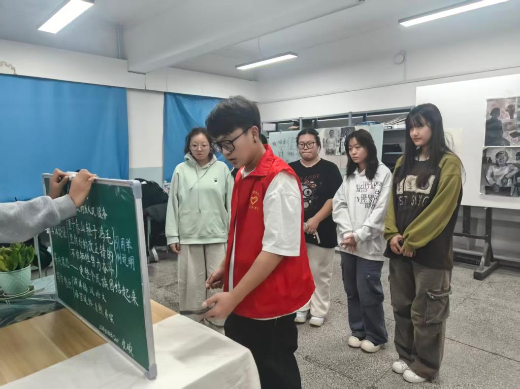 訓練期間,品軒書法社團骨干成員擔任助教,圍繞粉筆字板書布局、筆畫規范、結構比例等核心要點進行系統講授。針對同學們普遍存在的筆順混亂、間架松散、力度不均等問題,助教們采取“一對一指導+小組互評+范字臨摹”多維教學模式,循序漸進地幫助學生夯實基礎、突破瓶頸。從最初生澀的筆畫練習,到后期工整流暢的完整作品呈現,學生們在一筆一畫的錘煉中,不僅提升了書寫的實用性與美觀度,更深刻體悟到漢字所承載的審美意蘊與文化精神。