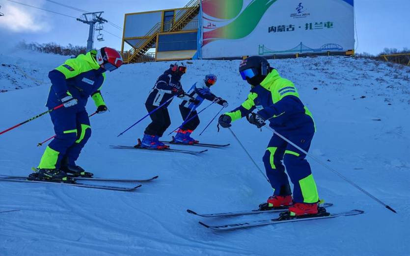 與此同時(shí),學(xué)院冰雪運(yùn)動(dòng)系主任王榮林帶領(lǐng)我校滑雪隊(duì)運(yùn)動(dòng)員在扎蘭屯金龍山滑雪場(chǎng)開展賽前備戰(zhàn)訓(xùn)練。訓(xùn)練聚焦第12屆全國(guó)大學(xué)生滑雪挑戰(zhàn)賽核心項(xiàng)目,每日開展6小時(shí)以上封閉式集訓(xùn),圍繞技術(shù)動(dòng)作打磨、體能強(qiáng)化、戰(zhàn)術(shù)配合及模擬競(jìng)賽等關(guān)鍵環(huán)節(jié)展開,涵蓋旗門技術(shù)、陡坡滑行、緊急處置等專項(xiàng)訓(xùn)練,同步搭配視頻技術(shù)分析與體能強(qiáng)化模塊,為賽事蓄力。